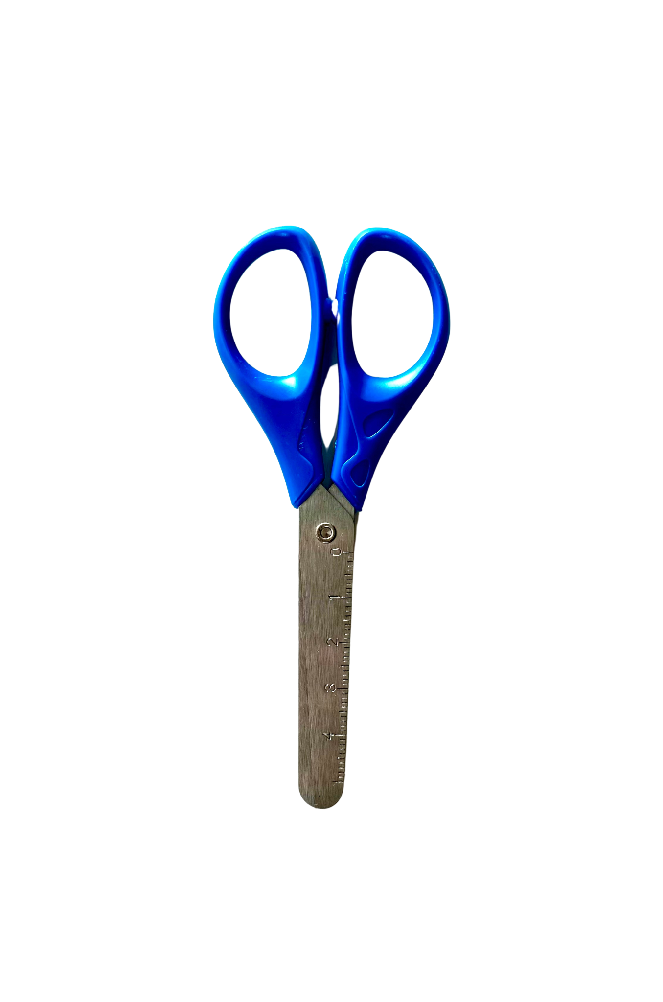 Blauwe of roze schaar met roestvrijstalen bladen, speciaal ontworpen voor rechtshandige kinderen. De afgeronde punten maken het veilig voor jonge kinderen.